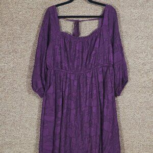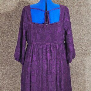Torrid Mini Clip Floral Square Neck Tiered Pockets Dress Sz 1 Plum Pre-Owned