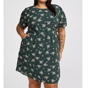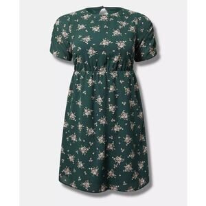 Torrid Mini Crew Neck Open Back Detail Dress Size 3X Floral Darkest Spruce EUC