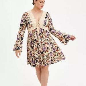 Torrid Mini Gauze Lace-Up Skater Dress Floral Print Circular Flounce Sleeves 3x
