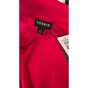 Torrid red Mini Jersey Long Sleeve Collar Surplice Dress Functional pockets.