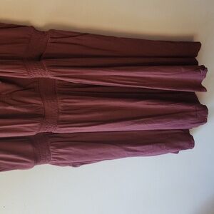 Excellent condition, one small snug in back shoulder, as pictured. Color is wild ginger burgundy. Super cute boho vibes, pockets 🙌 very lightweight and stretchy.