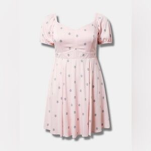 Torrid Mini Lightweight Romantic Cottagecore Pink Skater Dress Floral Plus Sz 4X