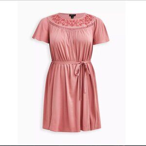 Torrid Mini Pink Boho Dress with Embroidered Detail- Size 5