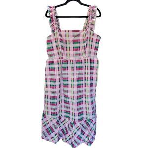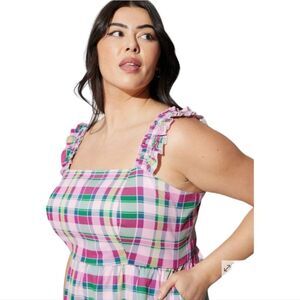 Torrid Mini Poplin Tiered Ruffle Strap Dress Plaid Green Pink NWT Plus 1X 14-16