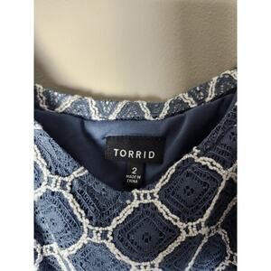Torrid Mini Skater Dress Plus Size 2X Fit & Flare Smocked Blue White Diamond