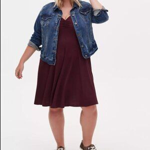 Torrid Mini Slub Rib Fluted Dress Winetasting purple