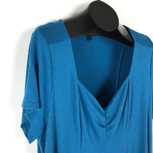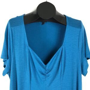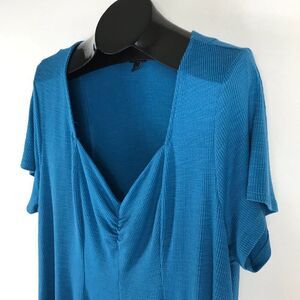 Torrid Mini Slub Rib Fluted Dress Women's Plus 1/1X Blue Stretch Knit Pockets
