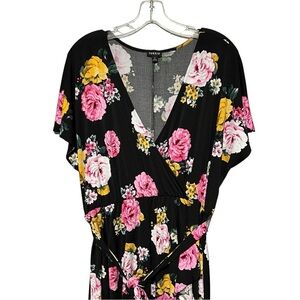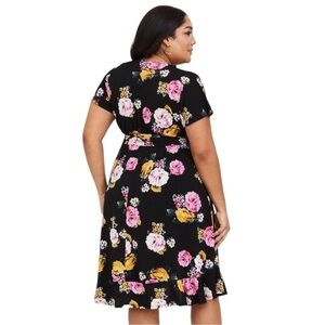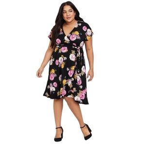 Torrid Mini Stretch Crepe Wrap Dress Black Fancy Flow Floral 2X