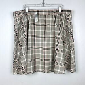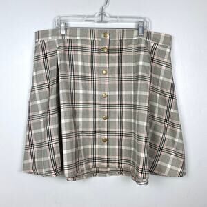 Torrid Mini Twill Button-Front Skirt Cream Plaid High Waist Size 2 2X 18/20