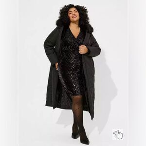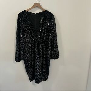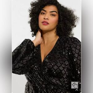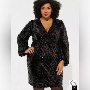 Torrid Mini Velour Sequin Surplice Dress NEW Size 16 Deep Black