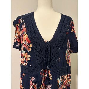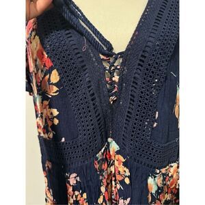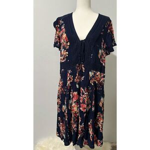 Torrid Mini Navy Blue Floral Tie Front Skater Dress Size XL