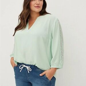Torrid Mint Green Challis V-Neck Blouse with Embroidered Sleeves Size 2X