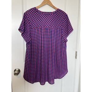 Torrid Modern Plaid Blouse Top Business Casual Size 2 2X 18-20 Pink Blue Black