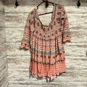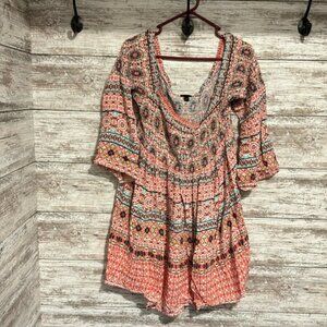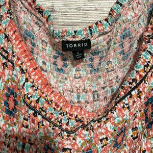Torrid Mosaic Print Smocked Bell Sleeve Dress Size 2