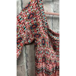Torrid Mosaic Print Smocked Bell Sleeve Off The Shoulders Mini Dress Size 2X