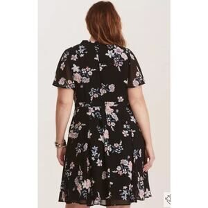 Torrid Multi Color Black Floral Print Chiffon Skater Dress Size 18 NWOT Wedding