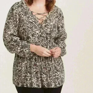 Torrid Multi Color Paisley Challis Lace Up Babydoll Blouse 4 4X 26