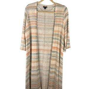 Torrid Multi Stripe Hacci Long Kimono Sweater Lightweight Hi Low Duster Size 0 L