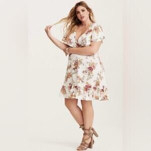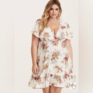 Torrid Multi-Color Floral Print Challis Caplet Skater Dress White Plus Size 4X