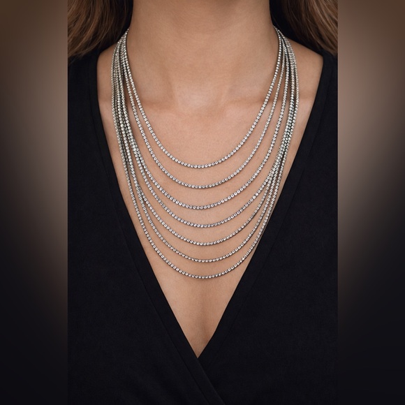 Elevate any outfit with this stunning Torrid multi-strand rhinestone necklace. Designed with cascading silver-tone strands and shimmering clear rhinestones, this piece adds instant glamour and sparkle. Perfect for dressing up a simple black top or adding drama to evening and special-occasion looks.