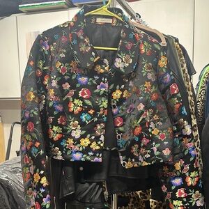Measures approximately 26 inches from pit to pit. Beautiful multicolor boucle fabric. Only worn a few times. Snap button closure and it has pockets!