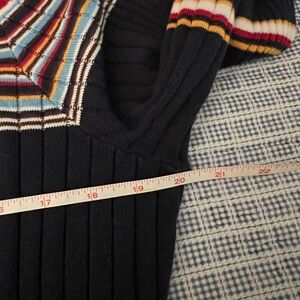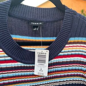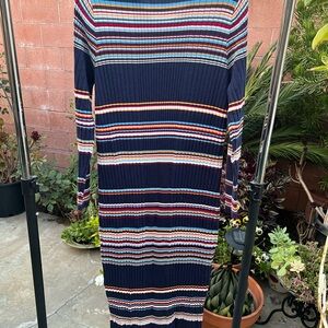 Vibrant striped dress with long sleeves. Ribbed texture for added style.