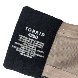 Torrid black strapless bra padded underwire lace wings multiway. Excellent pre-owned condition with no stains or tears. Please note: strap is not included.