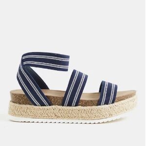 Torrid NAVY STRIPED ESPADRILLE PLATFORM Sandals (WW) size 10 Boho.