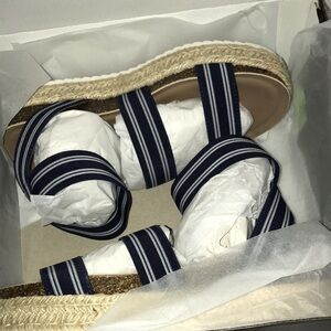 New in box. Never worn. Really cute platform flats. Fun nautical feel to them.