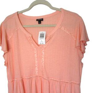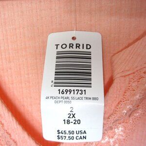 Torrid NEW Plus 2 2X 18 20 Peach Flutter Sleeve Lace Trim Top Blouse Orange