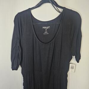 Torrid NEW Ruched Super Soft Elbow Sleeve Bodycon Dress Black Comfy Sz 1X