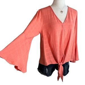 NWT coral orange M L Textured Woven Tie Front Top by Torrid