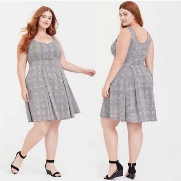 Torrid NWOT Houndstooth Scuba Skater Dress Black White Size 2X