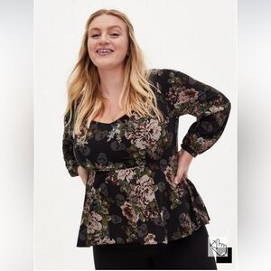 Torrid NWOT Peplum Crepe Sweetheart Neck Too Size 00 Romantic Goth Feminine