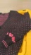 Front Sweater with long drop shoulder sleeves. Beautiful knitted heart motif with pops of red and pink. Body of sweater is a black background with the same colors knitted throughout. Really fun piece!