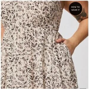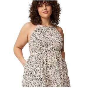 Brand new with tags! Torrid 2X (18/20) boho floral maxi dress in an airy neutral print. Flowy, tiered silhouette with a sleeveless cut, pleated front, and keyhole back. Made from a luxe 72% viscose / 28% TENCEL blend—soft, breathable, and eco-friendly.