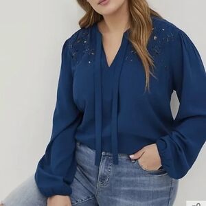 Torrid NWT Cutwork beaded embroidered cutout detail long sleeve boho blouse 0X
