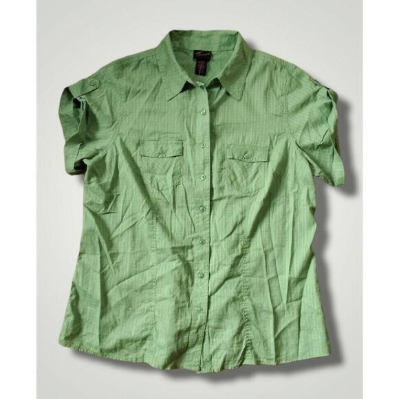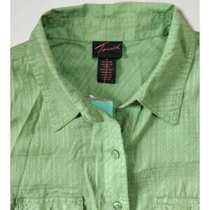 Torrid NWT Short Sleeve Roll Tab Button Up Top Size 2 Green.