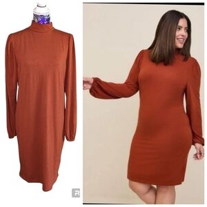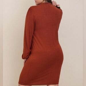 Torrid NWT Size 1x Mini Jersey Blouson Sleeve Bodycon Dress Brandy Brown