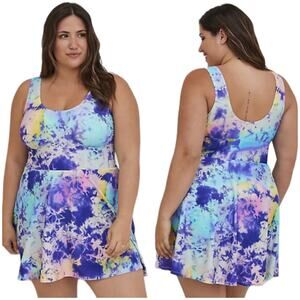 Torrid NWT Wireless Scoop Long Length Swim Dress With Brief- Tie Dye Size 1X
