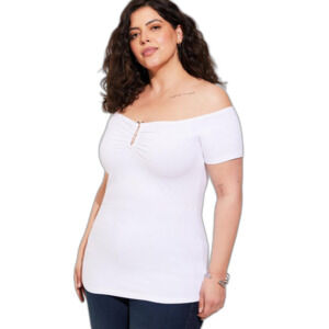 Torrid NWTB White Foxy U-Bar Off Shoulder Short Sleeve Top plus size 3x 22/24