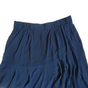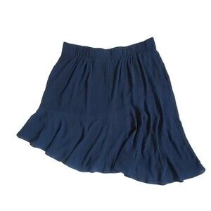Elevate your wardrobe with this stylish and comfortable Torrid navy blue crepe skirt in vanity size 2. The crepe fabric gives it a luxurious texture while the banded stretch waist ensures a comfortable fit. The asymmetrical flounce hem adds a playful touch, making it perfect for any casual occasion. The skirt is fully lined for added comfort and security.