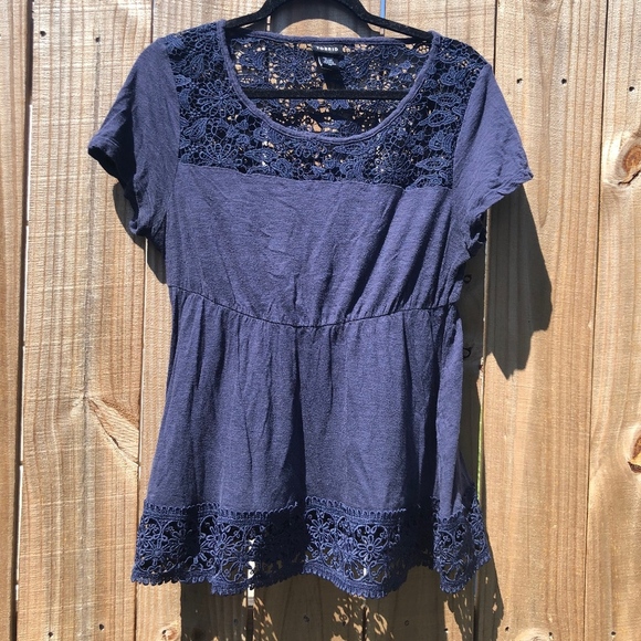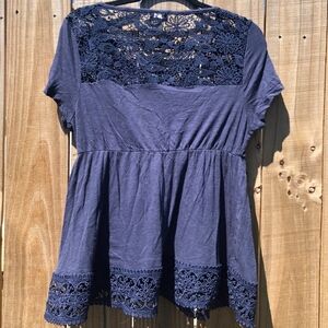 Torrid Navy Blue Lace Short Sleeve Top