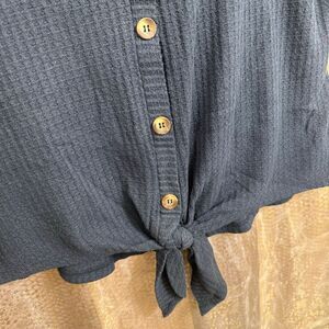 Torrid Navy Blue Waffle Button-Front Tie-Front Top Size 00 Medium