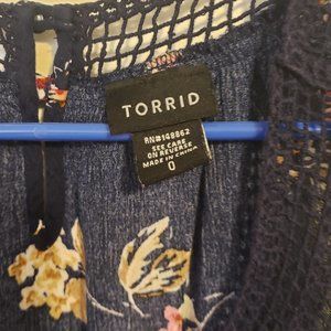 Torrid Navy Floral Crochet Yoke Gauze Tank