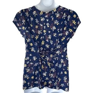 Torrid Navy Floral Stretch Challis Corset Back Blouse Size 00, Medium, 10