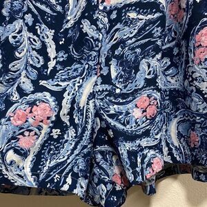 • Soft, flowy shorts with navy base and pink/blue paisley floral print