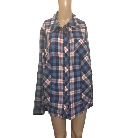 Chic plaid shirt in navy and red. Ideal for everyday style.