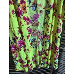 Torrid Neon Floral Yellow Duster Open Kimono Top 1/2 1X 2X Beachy