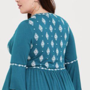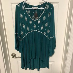 Women's New with tags SUPER SOFT AQUA EMBROIDERED BABYDOLL TEE